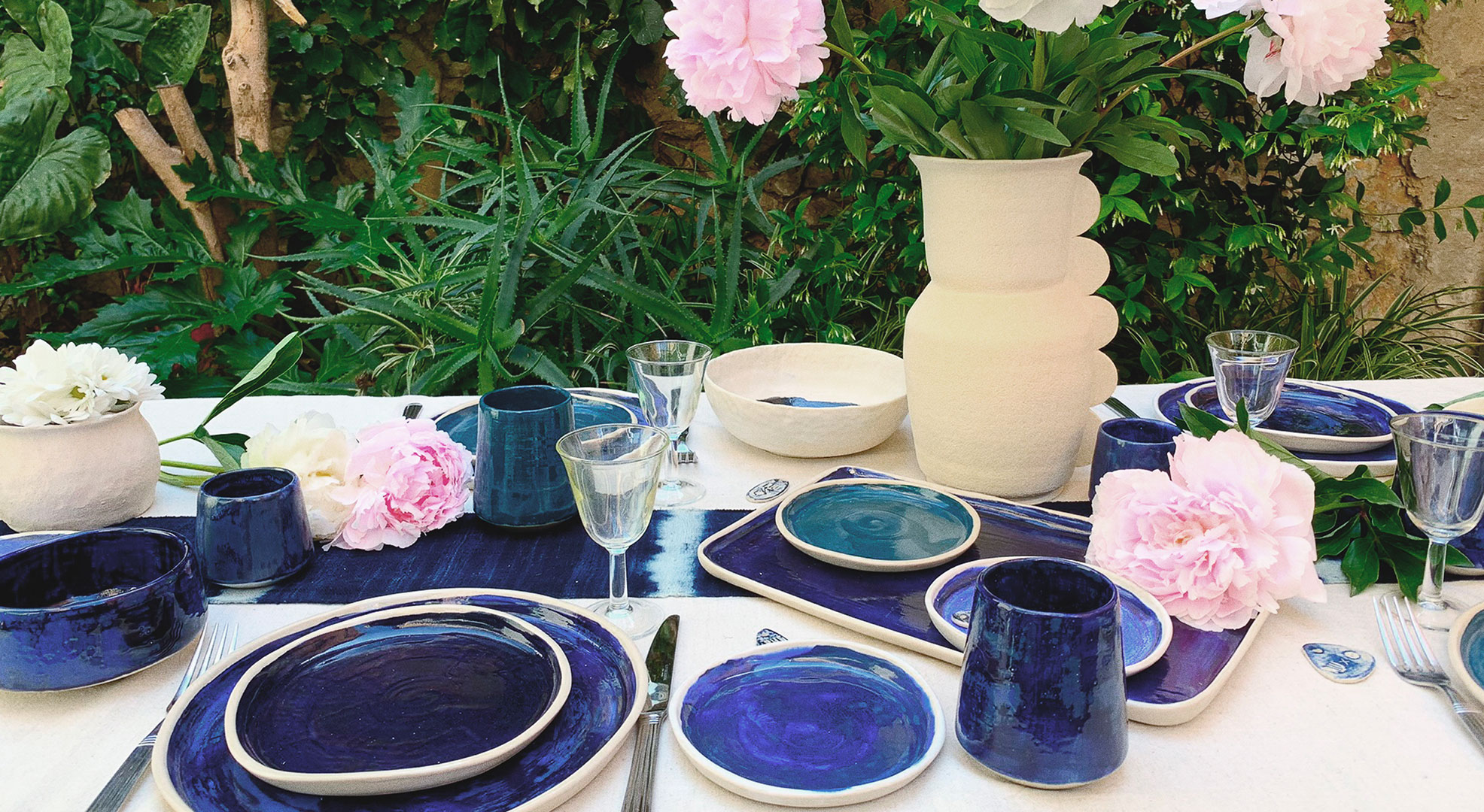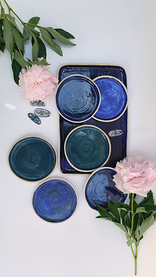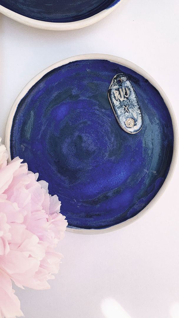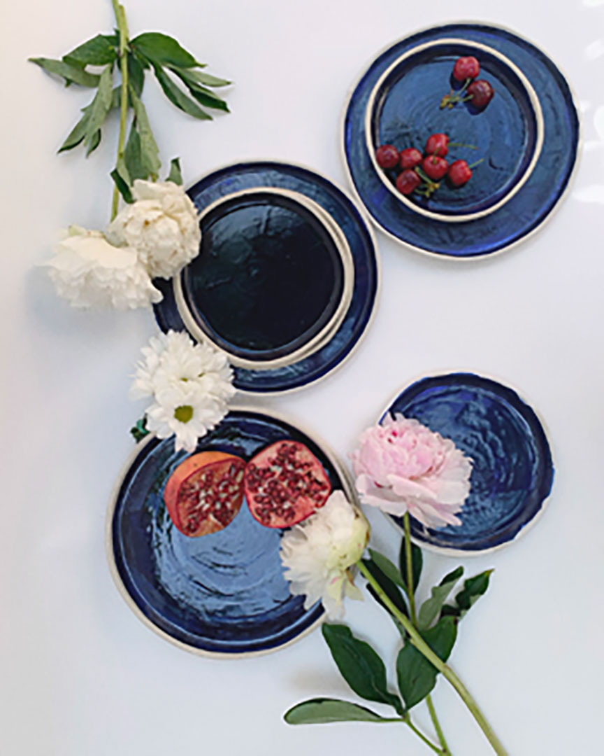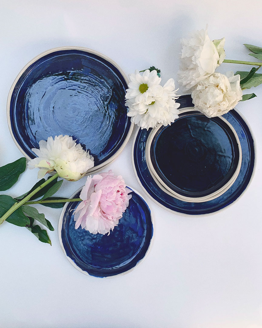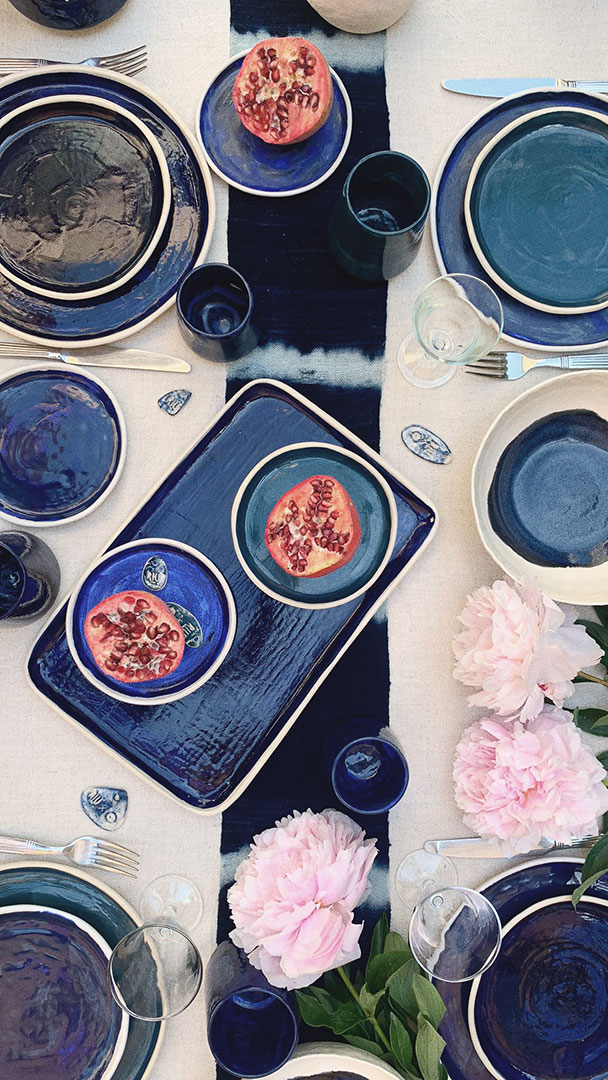 collection limitée de vaisselle pour @riuparis. grès blanc~émail bleu abyssal.